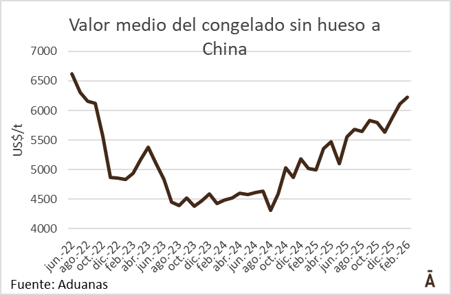 Valor medio de exportación de la carne vacuna en febrero superó los máximos de 2022