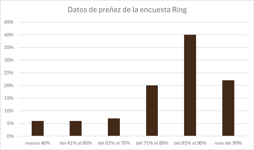 Preñez a nivel país se ubica en el 82%, con diferencia entre zonas