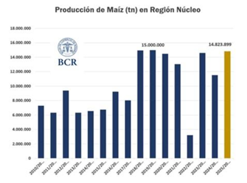 La producción 2025/26 de maíz en Argentina fue estimada por el informe WASDE del Departamento de Agricultura de Estados Unidos (USDA) en 51 millones de toneladas para esta campaña 2025/26, lo que dejaría un abultado saldo exportable de más de 36 millones de toneladas