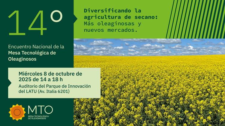 El próximo miércoles 8 de octubre se realizará el 14° Encuentro de la Mesa Tecnológica de Oleaginosos (MTO), instancia que tendrá lugar en la tarde y que reunirá a investigadores, técnicos, empresas y autoridades para abordar los principales desafíos del sector.