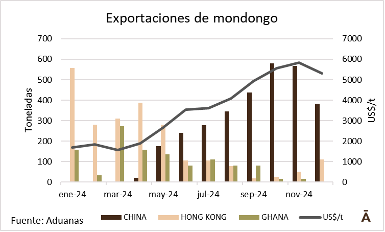 Se exportaron estómagos bovinos a China, mondongo y librillo, por unos US$ 25 millones en 2024. Considerando el valor medio promedio de exportación a otros destinos, las 3 mil toneladas de mondongo y 900 tons de librillo exportadas al mercado chino lograron ingresos adicionales por unos US$ 16,7 millones.