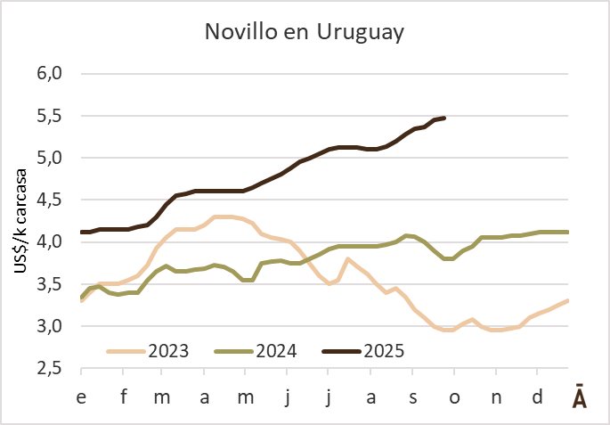 Además, el grueso de los productores no está especulando, ya que la idea es aprovechar las excelentes cotizaciones que alcanzó el mercado. La demanda se mantiene firme y con necesidad de asegurarse oferta para el mediano plazo. Hay frigoríficos cerrando contratos con corrales de engorde para diciembre y enero a precios fijos del orden de los US$ 5,60-5,70 el kilo. La expectativa es que el mercado se mantenga firme en los próximos días, pero seguramente dentro del rango de precios alcanzado desde fines de la semana pasada.