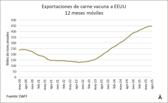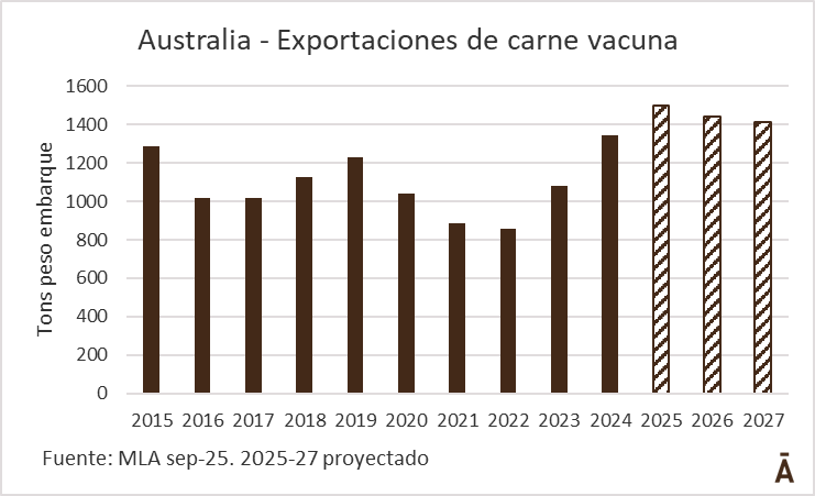 Aunque las exportaciones australianas de carne vacuna mantienen la senda ascendente en la comparación anual, en agosto el volumen embarcado al exterior se contrajo en unas 15 mil toneladas respecto al récord de julio.