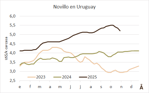 “Con aumento de actividad y demanda que continúa proponiendo menores valores, se dificulta la concreción de nuevos negocios”, dijo la ACG tras su reunión de precios de ese lunes. Así, la referencia (promedio) para el novillo perdió 7 cents la última semana a US$ 5,33 por kg a la carne, al igual que la vaca gorda (US$ 5,03) y la vaquillona (US$ 5,21).