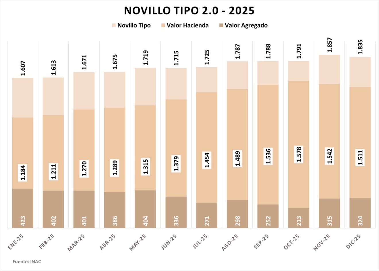 Tras un año de subas casi que consecutivas en el indicador del Novillo Tipo 2.0, de INAC, diciembre tuvo un pequeño ajuste a la baja. En diciembre, la disminución del promedio de la canasta de exportación, menudencias y subproductos determinó una caída de 1,2% en el indicador.