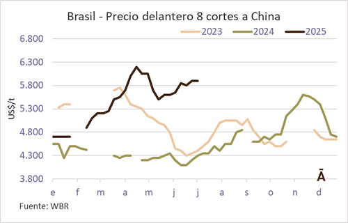 La actitud de los importadores chinos fue otra al inicio de esta semana. Desde el lunes el ritmo de consultas y pedidos de oferta se “movió bastante” y se “aceleró aún más” este martes, aseguró un trader regional en diálogo con World Beef Report (WBR). El operador manejó cierres desde Uruguay por shin & shank a US$/t 5.900 CFR, unos US$/t 100 más que los valores de siete días atrás. También pactó embarques de chuck & blade a US$/t 5.400 y falda a US$/t 4.100.
