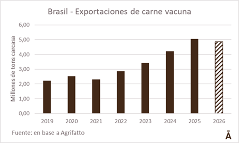 El ciclo pecuario en Brasil comenzará a dejar atrás la fase de liquidación del rodeo, que hizo pico en 2025, y comenzará a reducir la producción y las exportaciones de carne vacuna este año.
