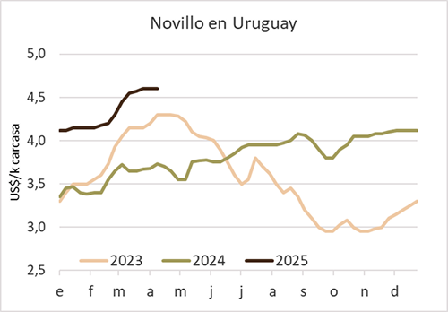 “El mercado del gordo sigue firme, con los mismos valores que la semana pasada. Alguna planta está pasando algún centavo menos, pero también hay productores que se resisten a vender a menores precios, en particular aquellos más novilleros, de ganados de punta”, dijo a Informe Tardáguila el operador floridense Enrique Patiño. El intermediario señaló que aún hay invernadores que aspiran a conseguir US$ 4,65 por kg por novillos especiales, mientras que el grueso de los negocios por animales más generales está sobre un eje de US$ 4,55-4,60 por kg. “La oferta tiene altibajos, no es constante, mientras que la demanda de la industria sigue sostenida. Eso de alguna manera ayuda a mantener el mercado”, consideró.