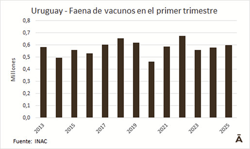 Las expectativas de disminución de la producción y de las exportaciones de carne vacuna previstas para este año en Paraguay no se confirmaron en el primer trimestre. De acuerdo con datos del Senacsa, Paraguay colocó en el mercado internacional 90.615 toneladas en el año a marzo, con un robusto crecimiento de 31% en la comparación con el mismo período de 2024. El valor medio de exportación creció 17% anual a US$/t 5.627.