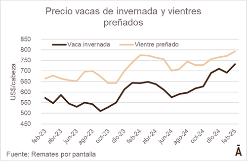 Sin embargo, en este contexto el precio de venta del kilo de vaca de invernada parece estar retrasado respecto a otras categorías, claramente en comparación con la escalera de novillos, cuya demanda desde los corrales es muy intensa, o también en el caso de las vaquillonas.