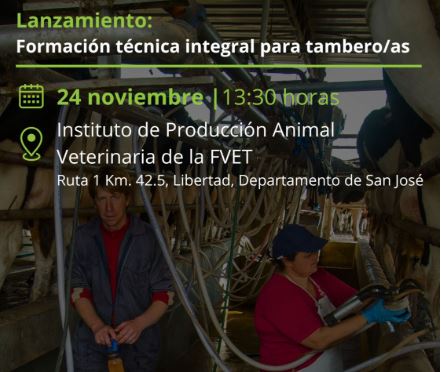 El próximo 24 de noviembre a las 13.30 h se realizará el lanzamiento de la Formación técnica integral para tambero/as, una propuesta orientada a brindar herramientas prácticas y actualizar conocimientos para el trabajo en tambos.