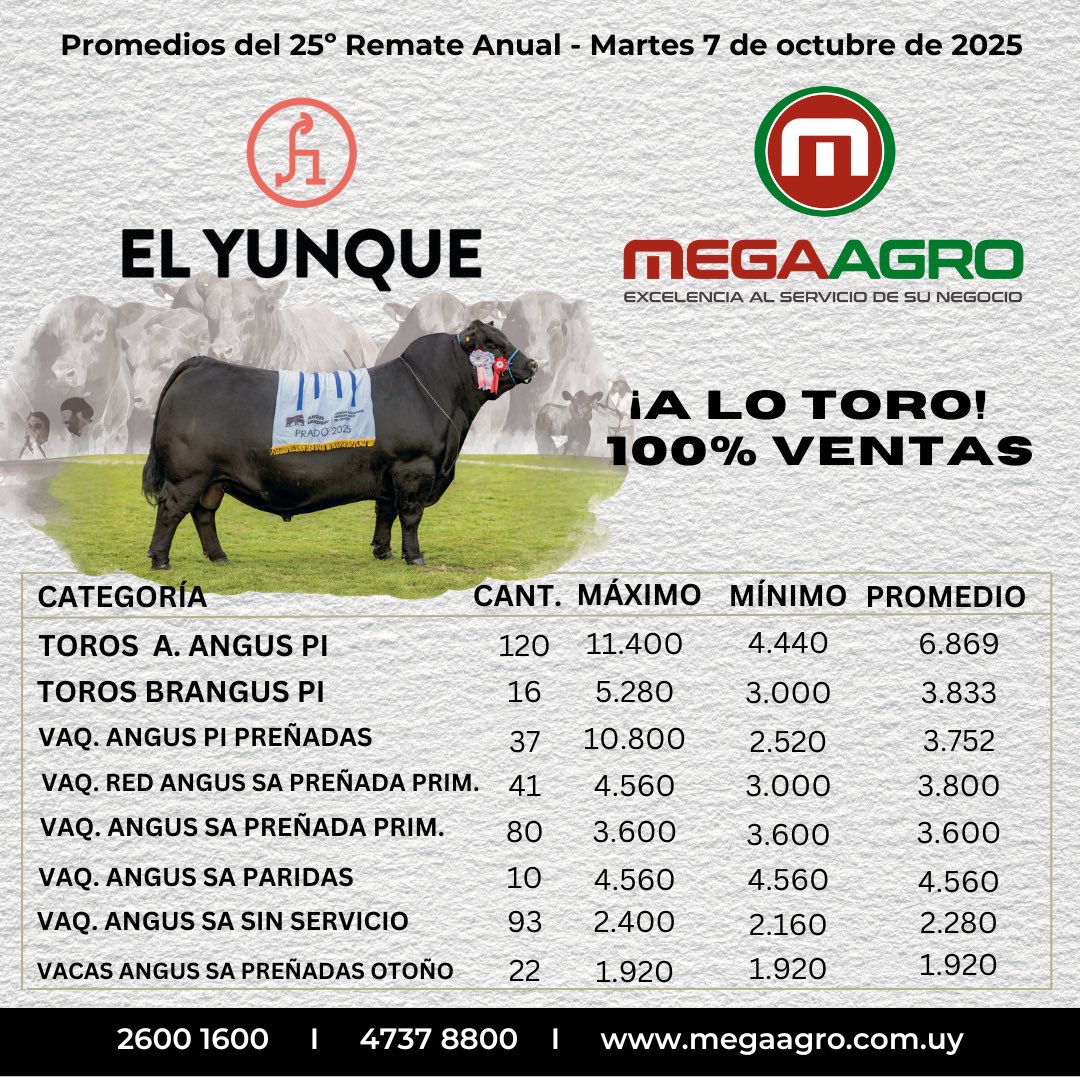 Con estos resultados, El Yunque reafirma su posicionamiento como una referencia en genética Angus de alta calidad, con más de siete décadas de selección y datos objetivos respaldados por genotipado.