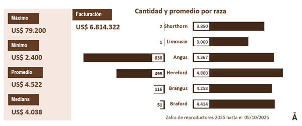 La zafra de reproductores y vientres ganó fuerza en la última semana con la comercialización de casi 900 toros en distintas actividades a lo largo y ancho del país. La tónica de firmeza en los valores versus la zafra 2024 y agilidad en la venta se sostuvo.