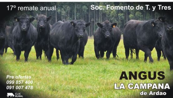 El próximo miércoles 8 de octubre, a partir de las 15 horas en la Sociedad de Fomento de Treinta y Tres, la cabaña La Campana de Ardao llevará a cabo su 17° remate anual con el escritorio Alfaro & Cía.